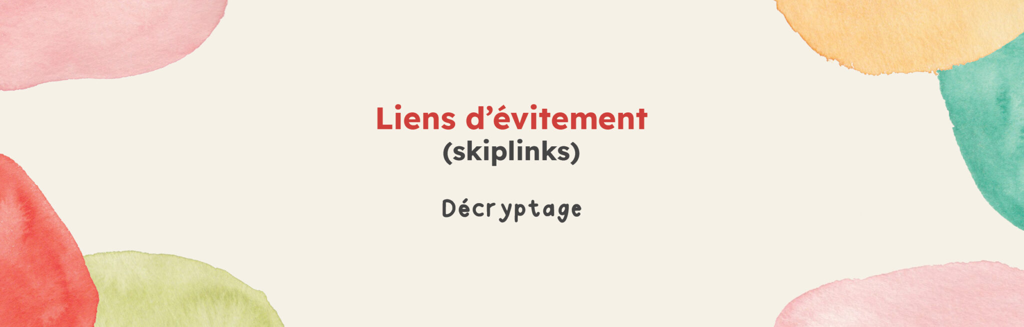Les liens d’évitement, appelés aussi liens d’accès rapide ou skiplinks, permettent aux utilisateurs qui naviguent uniquement au clavier de sauter les blocs de contenus répétés (menus de navigation, barre de recherche, publicité…) lorsqu’ils arrivent sur une page web pour lire directement le contenu principal.